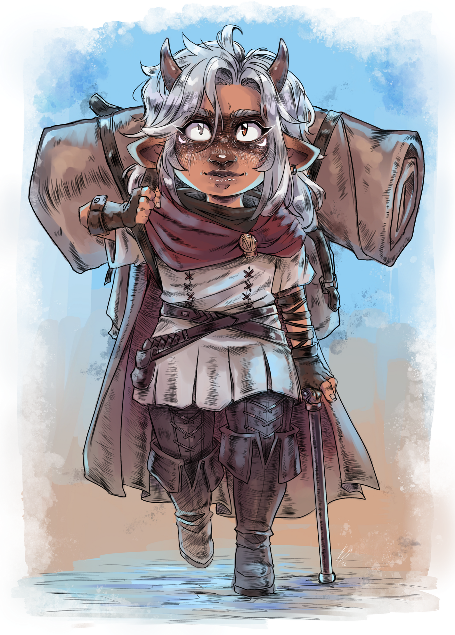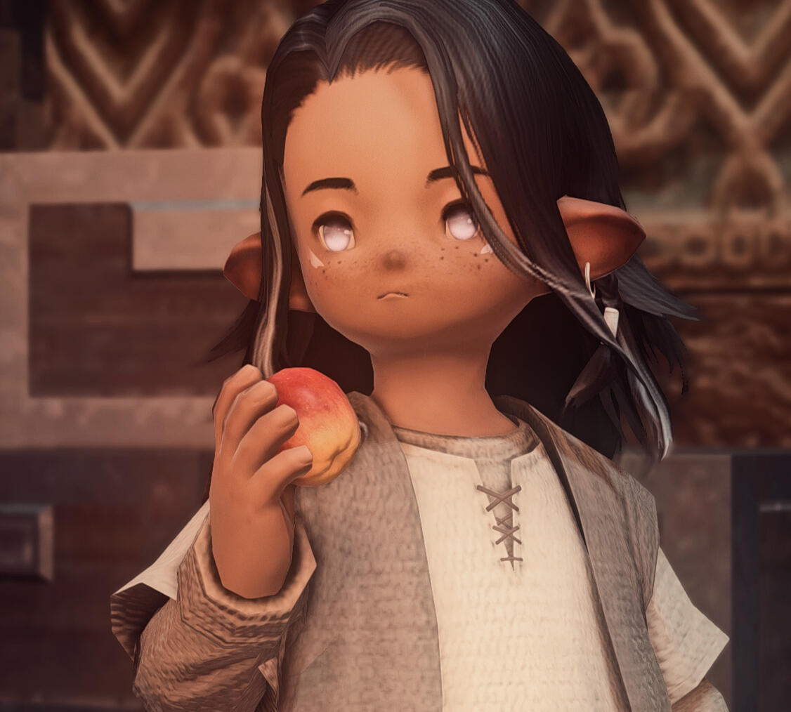 Roscoe was born in Ala Mhigo, ten years before the imperial takeover, to Dunesfolk parents. His mother, Mimiru Miru, was an Ala Mhigan engineer and general tinkerer, while his father, Yuyuhari Lilihari (known as Hari) was a merchant originally hailing from Ul'dah - one whose stall was frequently hard to spot behind crowds of much larger bodies poring over his wares, while his child dozed peacefully in his papoose, soothed by the noises around him. They were not a wealthy family, but they were happy.When he was fourteen, Roscoe came out to his parents as transmasc, and subsequently shed his birth name in exchange for the masculine Lalafellin name Rurukequ - or Ru, as he was known for short. Unbeknownst to him, it wouldn't be long before necessity had him shedding this name as well.When Roscoe was sixteen, his parents were targeted by Imperial forces for their undercover work for the Ala Mhigan Resistance - he was separated from them and forcefully conscripted into the army, informed not long after of their deaths at Garlean hands. Roscoe's memories of the period after this are patchy at best; he doesn't remember fleeing or fighting, but he does remember coming back to himself in the wilds of Gyr Abania, far from the city, with only the clothes on his back and a bloodstained knife gripped in trembling hands. It would be many years before Roscoe understood this blank, bloodied space in his memory to indicate the first appearance of 'Esteem', a shadowy figure he would not become well-acquainted with until he had walked many weary steps in his journey as an adventurer.A merchant, finding the traumatised young lalafell at the side of the road, offered him safe passage to the Black Shroud, where they made it cautiously through the checkpoint - and where Ru took a moniker from a poster of a smiling bard and adopted the name Roscoe as his own. Later, he would go on to seek shelter under the roof of a kindly Elezen family, with whom he stayed for some time before moving onto Little Ala Mhigo and then Ul'dah. He never forgot that family's kindness, and kept the name of their establishment - the Bramblewood inn - as a part of his identity: a name that he would one day sign on the pages of the Adventurers' Guild's ledgers.