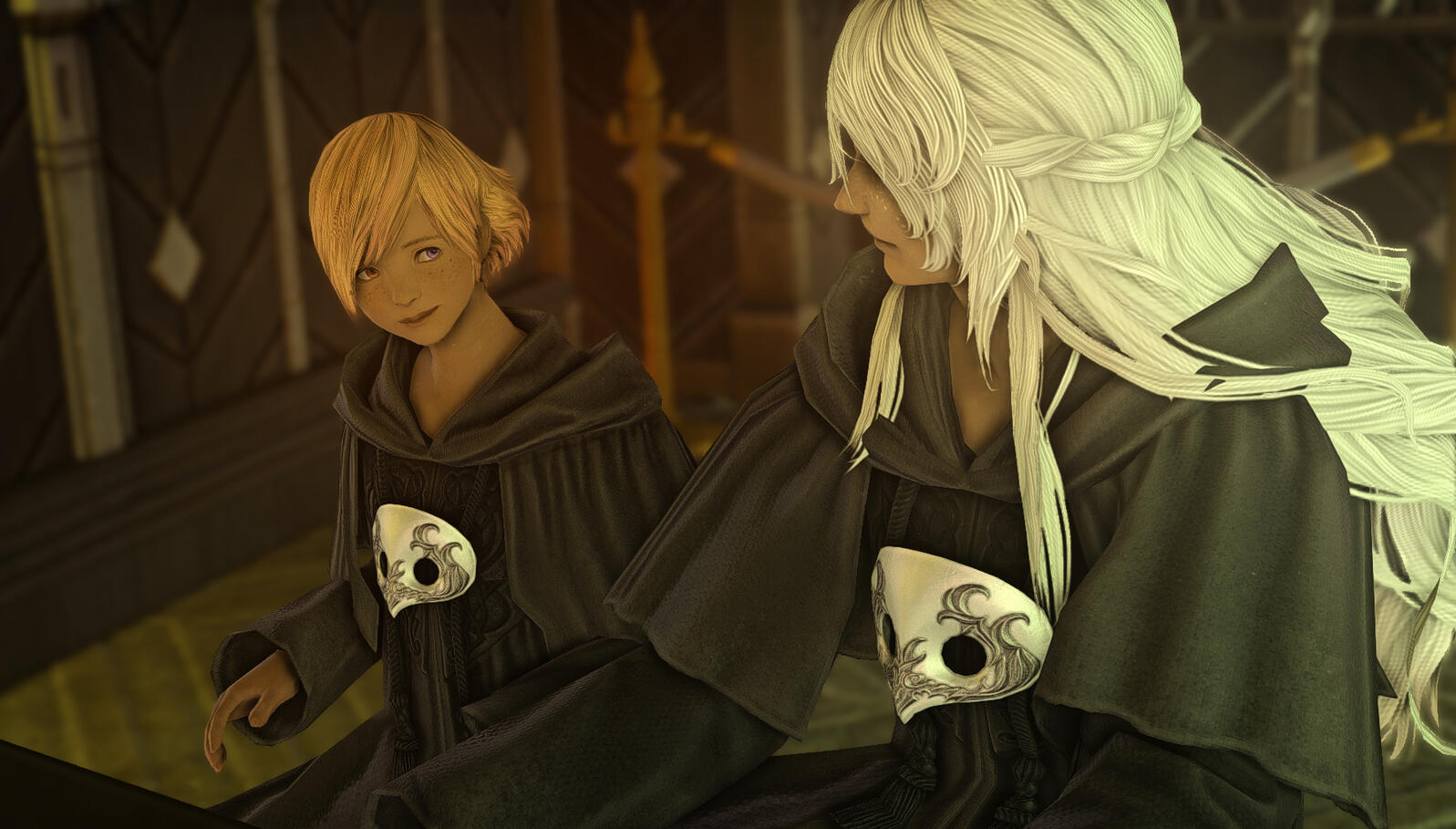 Roscoe and Yuyuka's journey to the Tempest, to the dizzying heights of the Crystal Tower to confront Elidibus, and later to the unsundered land of Elpis, gave them the answers to some of their most burning questions from their journey together. Why had an uncanny sense of deja vu nagged at them since the day they had first met on that beach in La Noscea? What was it that Emet-Selch saw in them - something beyond the mantle of 'hero' that had been laid on their shoulders? The answers lay in the seat of Azem - or rather, seats.Somewhat unconventionally, when Venat left the Convocation of Fourteen, she chose two successors: family, who accepted the role of Azem between them. Euphony and Meraki were uncle and niece, practically joined at the hip with how little they were seen apart. If it had been permitted, they would have quite literally shared the single seat of Azem until Emet-Selch insisted for the sake of professionalism that another be brought into the chamber.