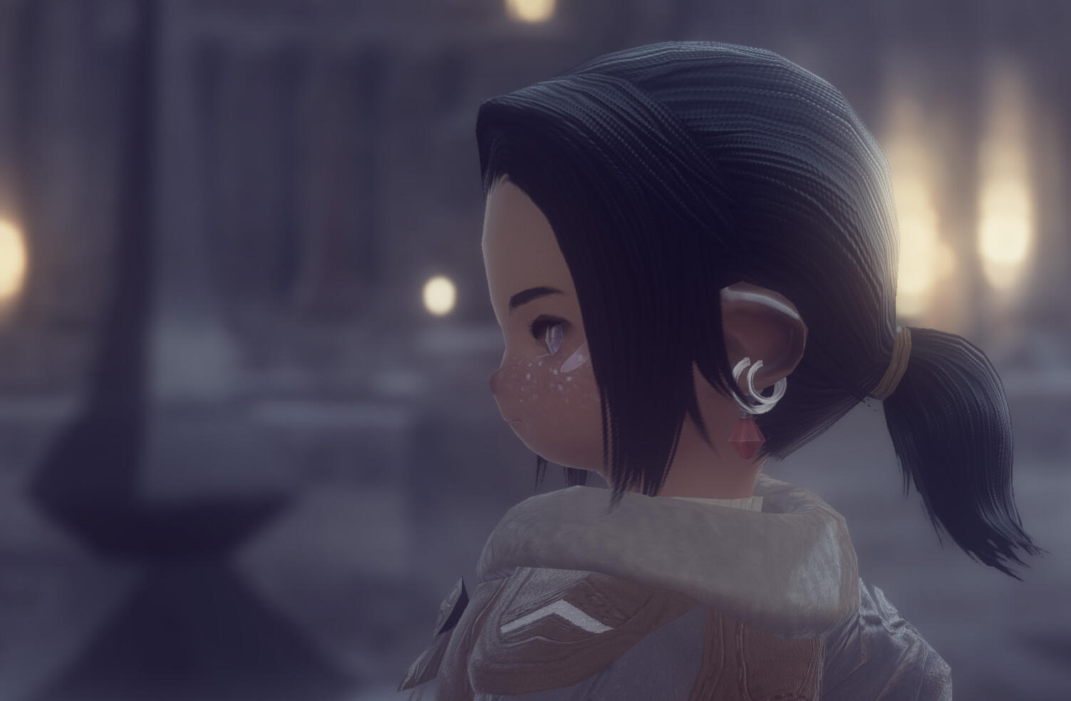 After many years trying and failing to put down roots, Roscoe finally managed to build a new home and find steady work as a musician - and later, a music teacher - in Ul'dah. It was during one of his evening performances in a local tavern that he met Khali'ra, a half-miqo'te, half-viera man on leave from his place in the Brass Blades due to an injury (a position that Roscoe would later learn he held unwillingly only thanks to the persuasion of his family). Initially a misunderstanding led to Khali'ra asking Roscoe to leave him alone because he found him irritating, but later that night when he had packed up and finished for the night, Roscoe dropped his extroverted bard persona and approached him to apologise. They ended up chatting late into the night, and found that they quickly forged a connection. This connection grew into more, and eventually the two of them became a couple, with Khali'ra moving into Roscoe's small home within the city.Years passed peacefully until unease spread through the realm at Dalamud's steady and unnerving descent. As the Garlean army encroached on Carteneau, members of the Brass Blades were conscripted into the newly-formed Immortal Flames, Khali'ra was called to the frontlines and Roscoe, having no combat training and not even a fleeting memory of the one instance in which he had had to fight for his life, unable to do anything but wait and hope for his safety. However, a happy reunion was not to be; as the earth shook, the seas roiled and the very world transformed when the Calamity struck Eorzea, a voice then unknown to Roscoe called out to him, and he vanished as surely as if he had never existed at all.Khali'ra returned, scarred both emotionally and physically, from the battle of Carteneau to find no trace of Roscoe; despite asking neighbours and colleagues, he received no answers at all. The immediate assumption was that his partner had died in the chaos and destruction of the Calamity, but Khali'ra refused to accept this until there seemed to be no other explanation. No body was ever found, but this was the case with many who had perished. Broken and grief-stricken, Khali'ra followed the only path he could process: returning to his unwilling role in the Flames, the spark that Roscoe had brought into his life extinguished.Five years later, Roscoe appeared, bewildered and frightened, in the middle of the Black Shroud. His once-grey eyes and dark freckles had taken on a pale lilac hue that seemed to hold a peculiar glow all their own, and any scars he possessed seemed - bizarrely - to have become crystallised. When he looked at them, the faintest flicker of memory teased the back of his mind: those same crystals, surrounding him, and a woman's voice... but those fleeting glimpses were gone as quickly as they came. Most alarmingly of all, those five years had seemed to pass in an instant.Desperate to immediately return to Ul'dah to be reunited with Khali'ra, Roscoe attempted to set off, only to be rescued from harm's way by a hyur woman and a lalafellin man whom he would later come to know as Yda and Papalymo. The Shroud was not as he had once known it: twisted and dangerous, it was now impossible for him to traverse, and airship travel was reserved only for the most special of cases in the realm's new state of uncertainty. He would need to train for battle and arm himself ready to step into harm's way before he could even begin to make his way home, and so he joined Gridania's Adventurer's Guild and enrolled as an archer.