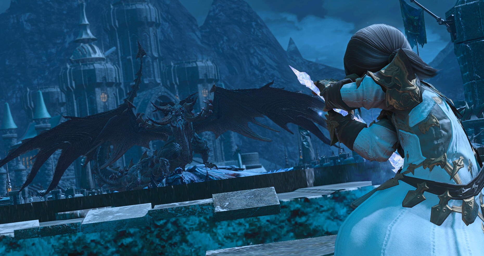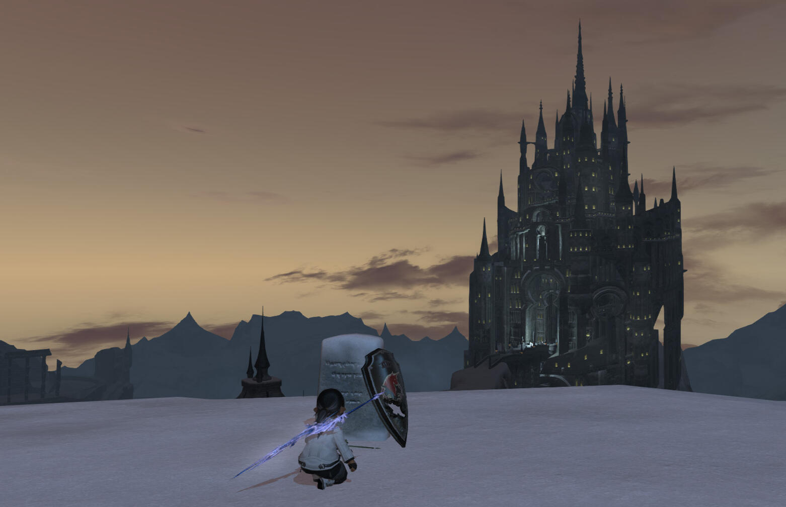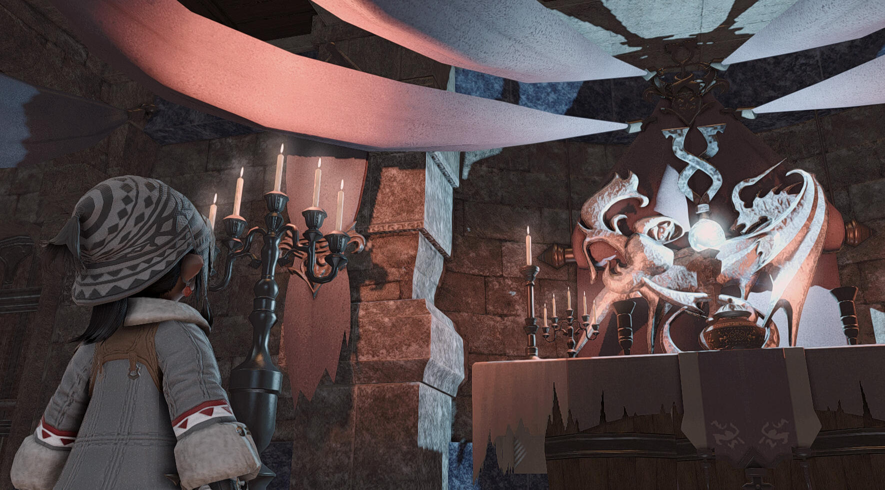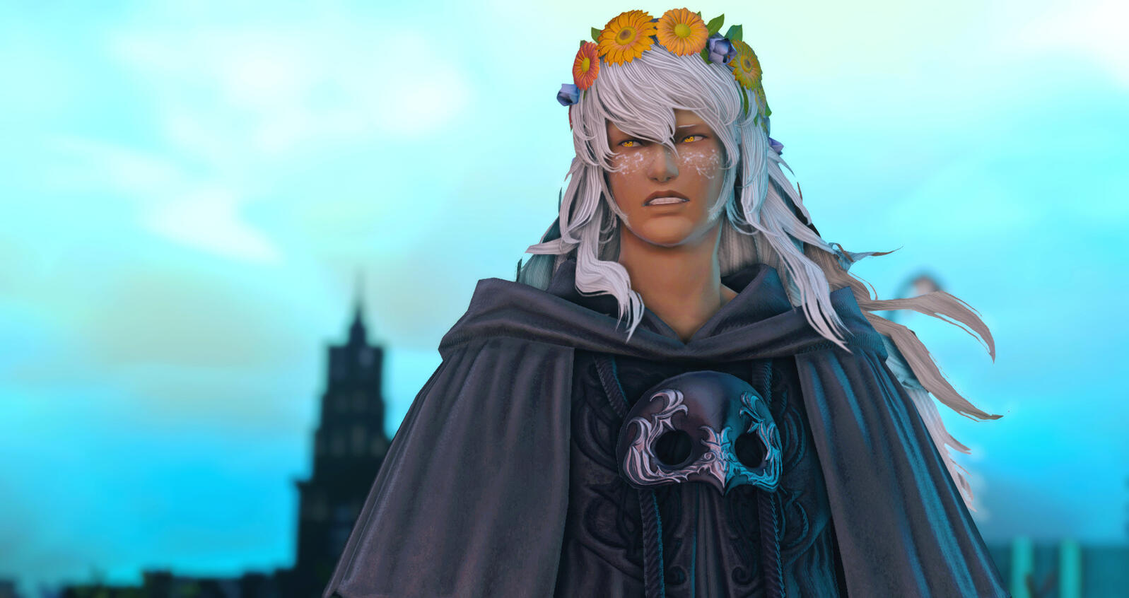 A chance meeting with the mysterious Fray in the depths of the Brume led to Roscoe taking up the greatsword, and the opportunity to chase down corrupt Temple Knights and dole out justice for their behaviour brought a much-needed release for his emotions. For a time, he was encouraged by Fray’s clear delight at the violence with which they dealt with people who should never have been able to hold power, but upon the discovery of the truth behind their initial meeting, he realised he had lost sight of his goals - and possibly himself. The role of a Dark Knight was to protect those who did not have the strength or power to protect themselves, not to simply bathe in blood for the sake of the battle’s thrill.Roscoe took his lessons to heart as he continued his journey, making peace with the anger that roiled within him and vowing not to let it overtake him again. Along with donning the armour of a Dark Knight in place of the light combat wear of a Red Mage, Roscoe found his appearance changed in an unexpected way upon discovering the truth behind the man who called himself Fray. A dark and perpetual shadow settled across his eyes to match Fray’s, once he had seen and made peace with Esteem’s existence: a mask of sorts, but one he wore proudly rather than out of shame.A TURN OF THE TIDE